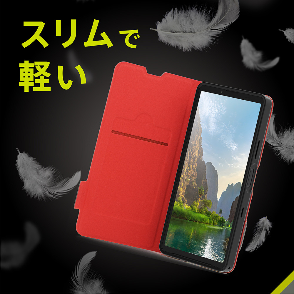 薄くて軽く、端末のフォルムを損ねない手帳型ケースです。耐久性と質感が高いレザー調素材と、衝撃吸収性能を持つTPU素材が端末を守ります。