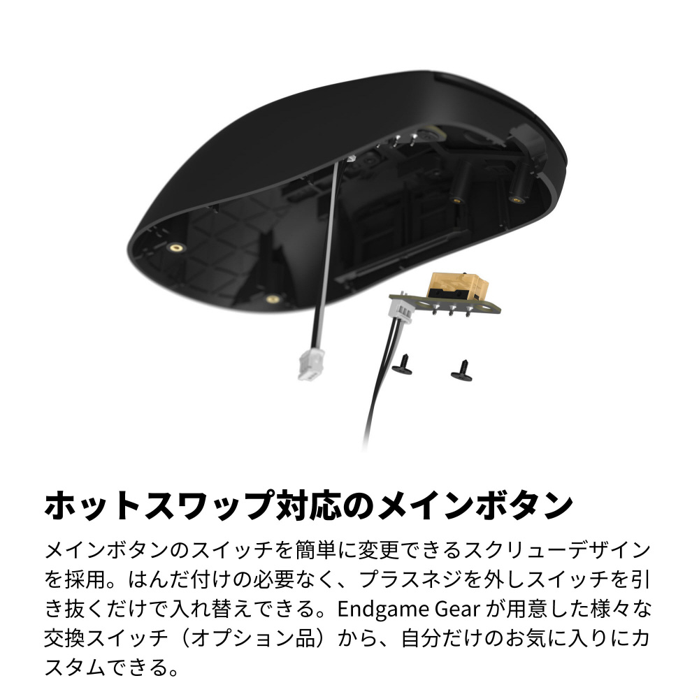 Endgame Gear が用意した様々な交換スイッチ(オプション品)から、自分だけのお気に入りにカスタムできる。