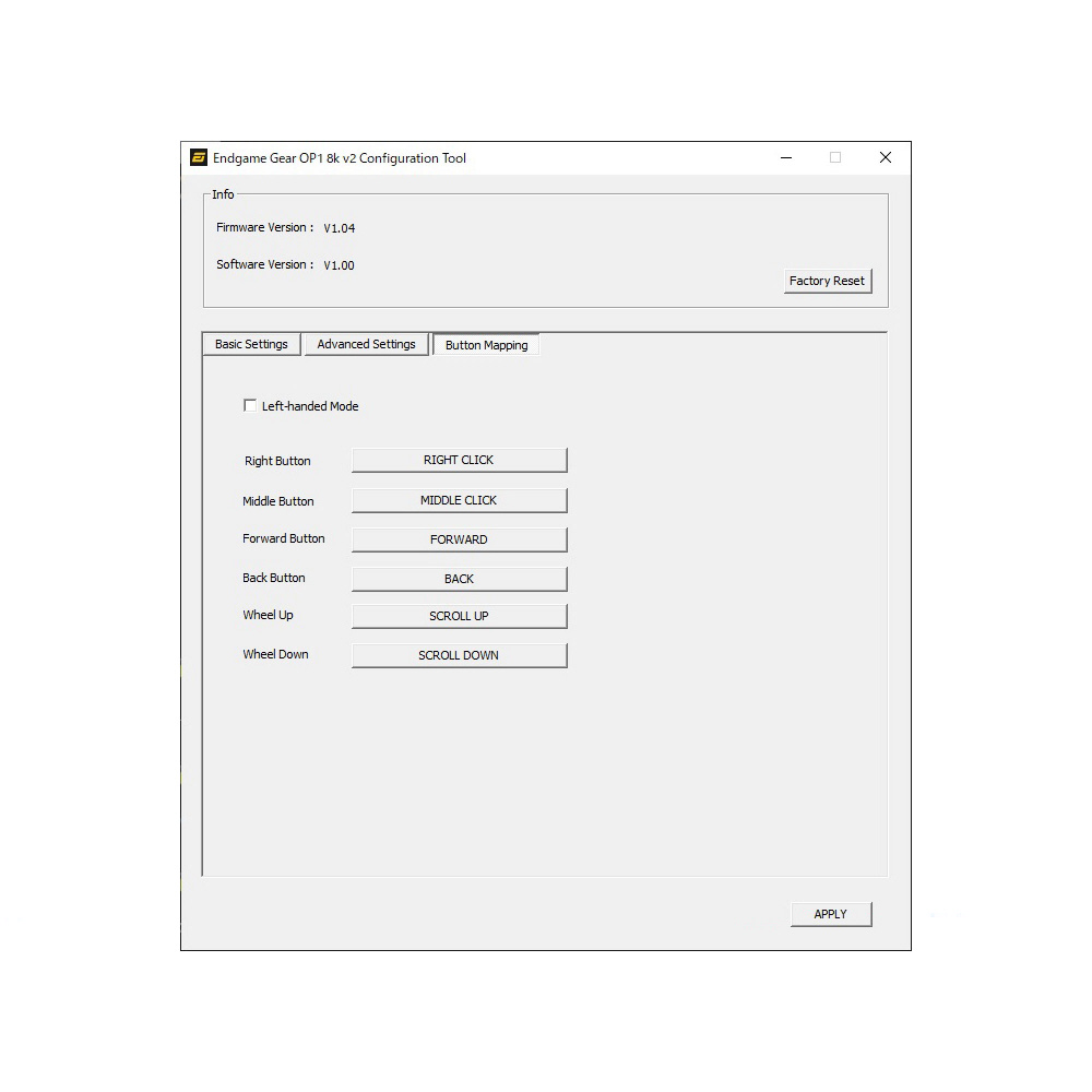 各ボタン設定、メインボタンのモード切替、マルチクリックフィルター、ポーリングレートやLOD設定等が行えるソフトウェアを用意。