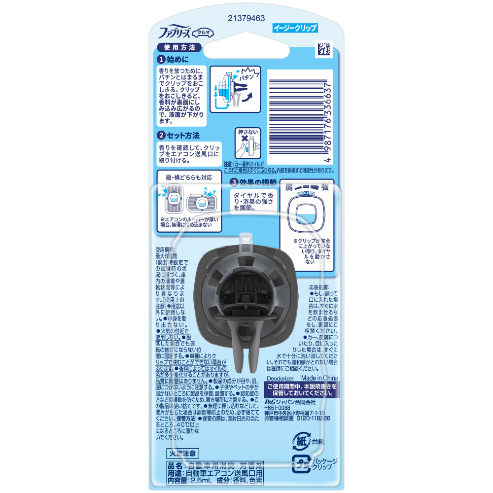 ファブリーズ イージークリップ 抗菌エキスパート クリーン・オーシャン・ブリーズ(タバコ) 2.5ml