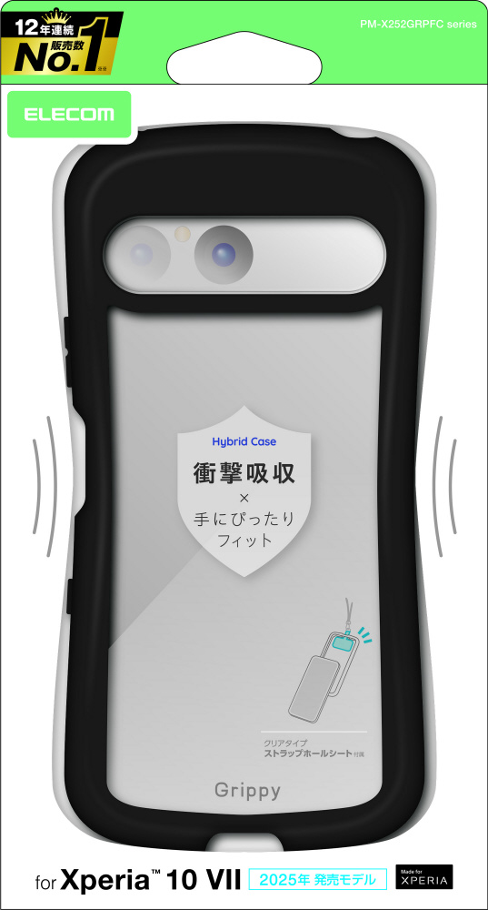 全周に配置した独自設計のエアークッションが衝撃を吸収し、背面には高硬度のポリカーボネート素材を採用。中央のくびれ形状に平坦な面を設けることで、手に馴染む快適なグリップ感を実現したGrippyシリーズの耐衝撃ハイブリッドケースです。