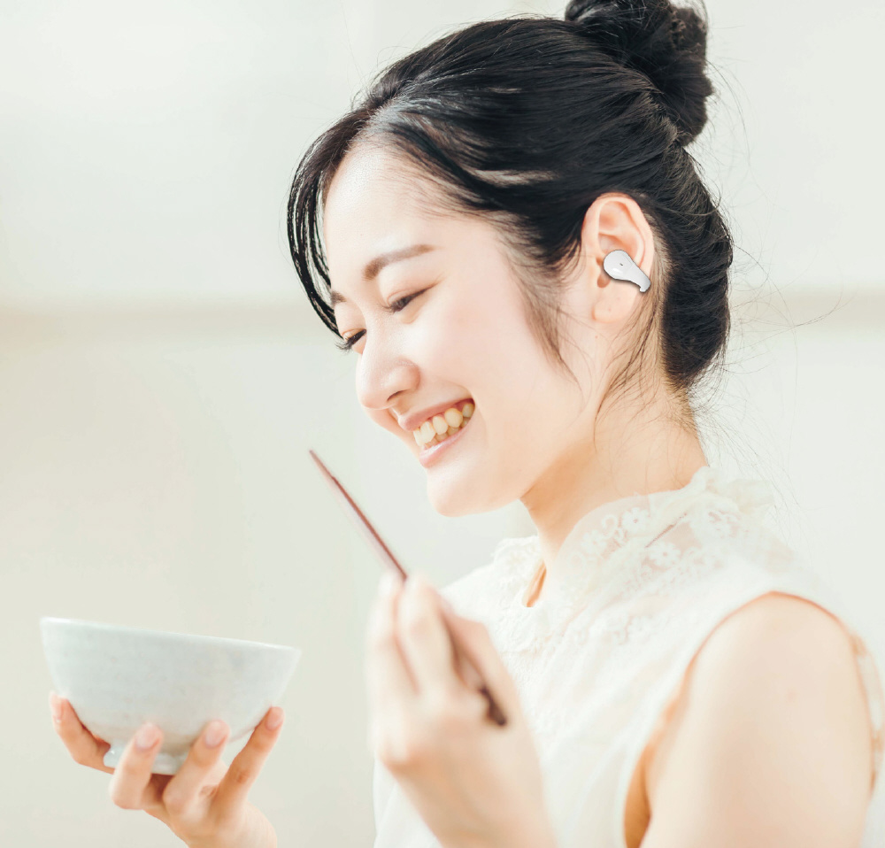 ■耳に挟むオープンイヤー型で圧迫感なく周囲の音が聞こえる
