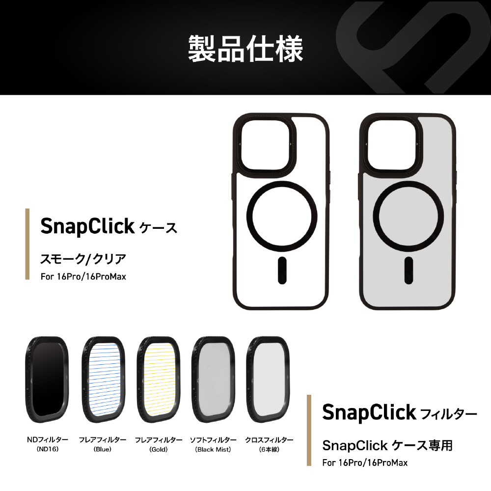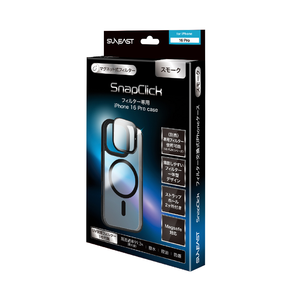 SUNEAST SnapClick マグネット型フィルター交換式 ケース iPhone 16 Pro用 スモーク SE-KSCIH0AF SE-KSCIH0AF