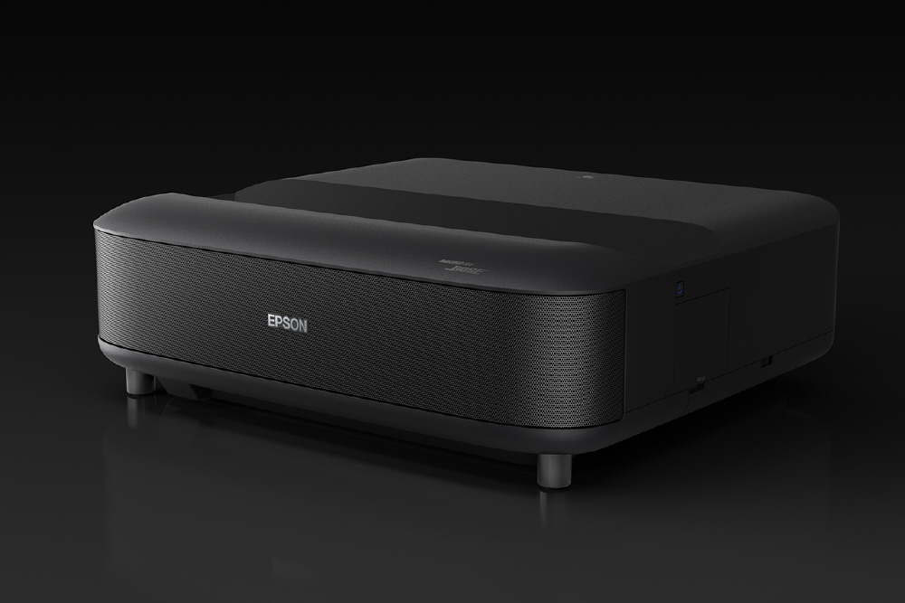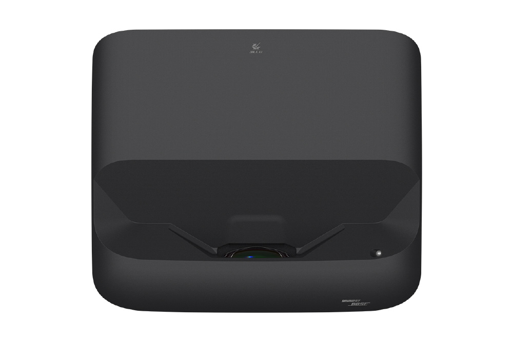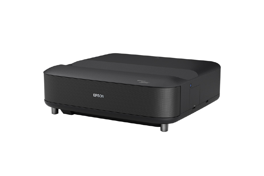 超短焦点モデルだから、リビングの壁際に置いて家族みんなで大画面が楽しめる。ブラックとホワイトの2色のカラーバリエーションでインテリアにも自然になじみます。