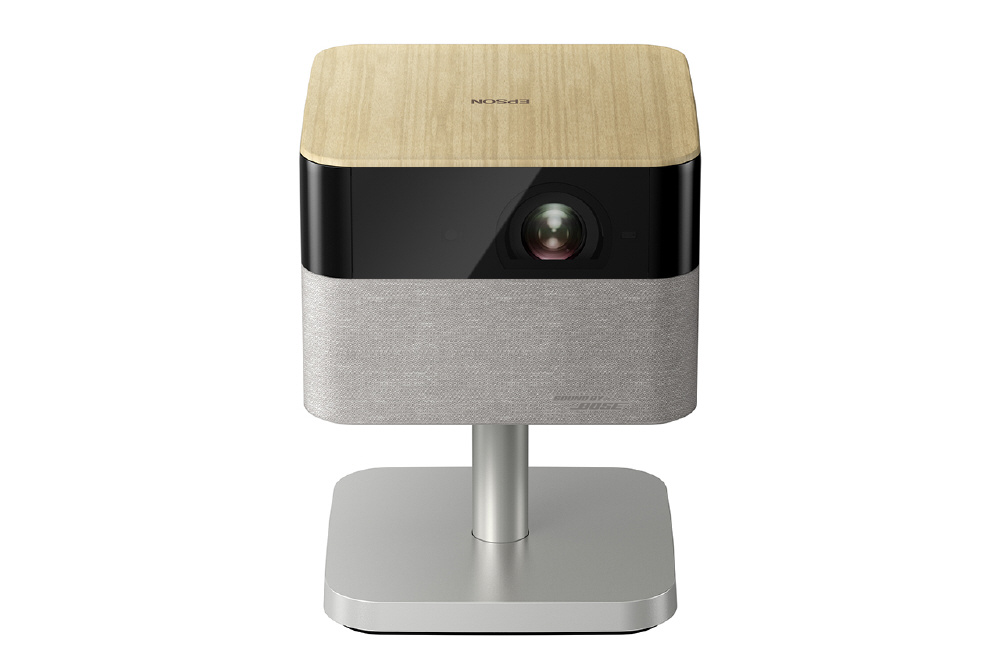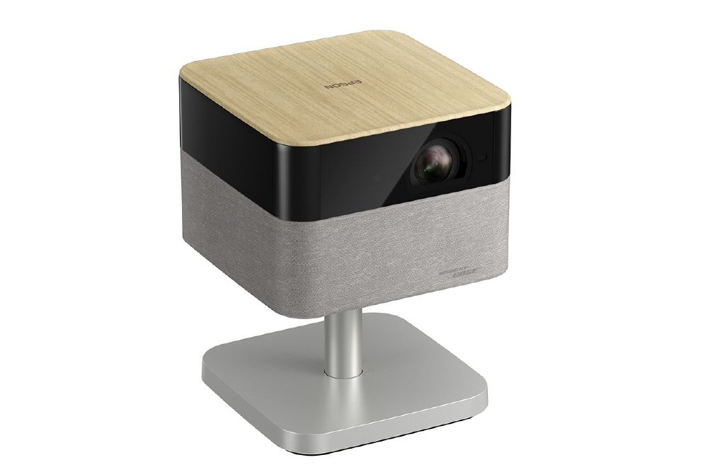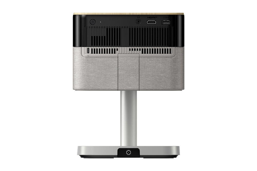 インテリアになじむ洗練されたデザイン。アンビエントライトを搭載し、お部屋をおしゃれに演出。フット付だから角度調整や天井投写が可能で、さらにオプションのフロアスタンドと組み合わせて設置場所を選ばず快適に映像を楽しめる。