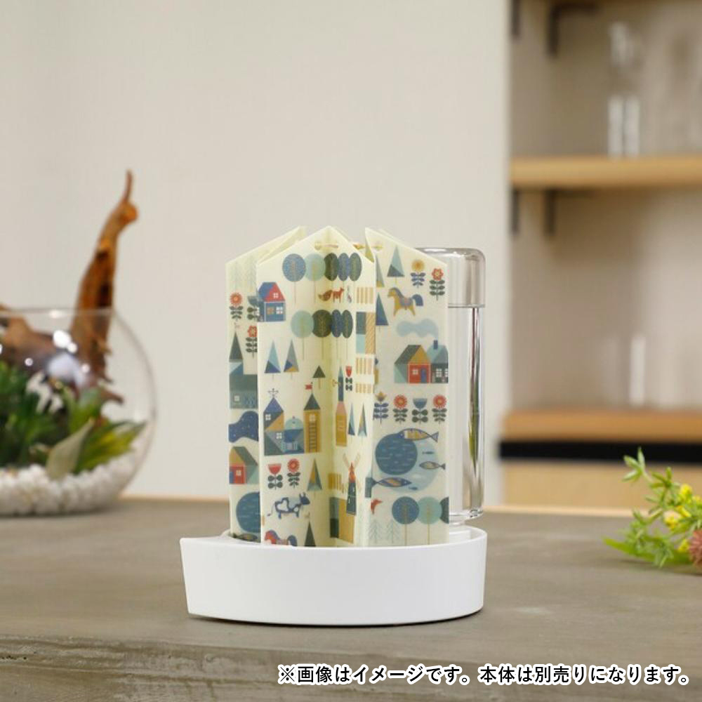 加湿器用に開発された紙素材を採用しており、加湿能力はコップ約10杯分。