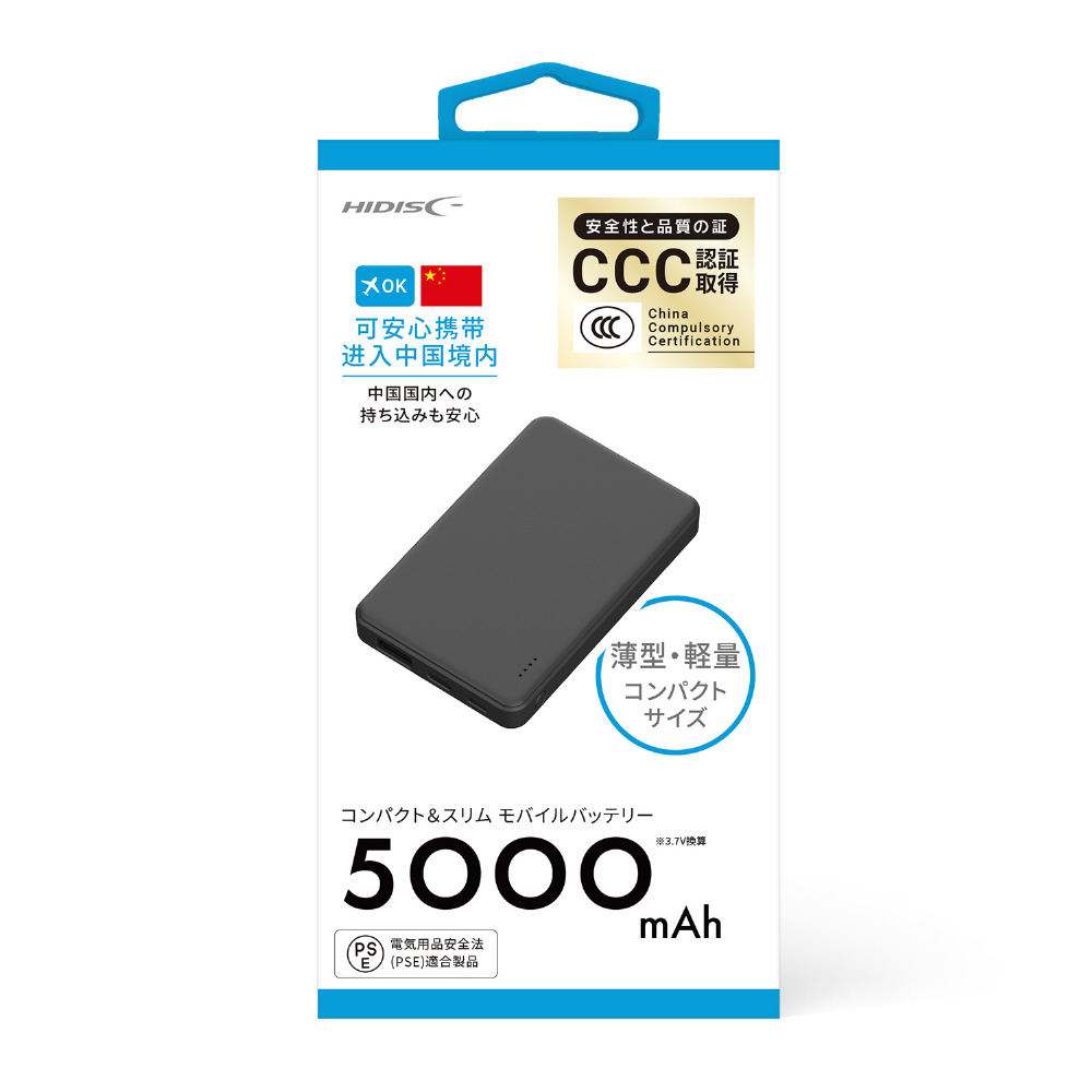 CCC認証 5000mAh モバイルバッテリー ブラック HD4-MBFT3C05BK [3ポート]