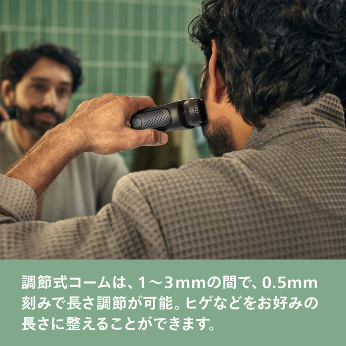 1?3mmの間で0.5mm刻みで長さ調節が可能な調節式コームで、ヒゲなどをお好みの長さで整えることができます。