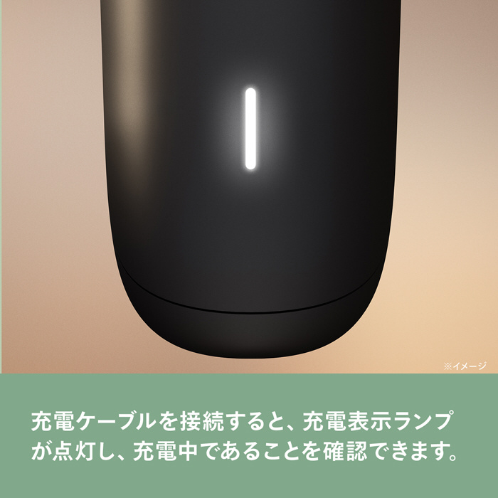 充電ケーブルを接続すると充電表示ランプが点灯し、充電中であることを確認できます。(USB充電アダプタは同梱されておりません。)