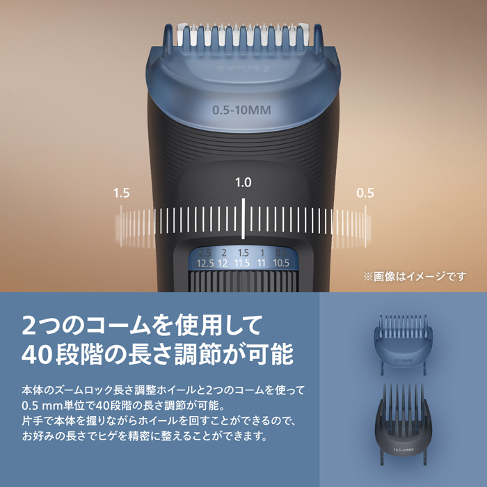■2つのコームを使用して40 段階のヒゲの長さ調節(0.5 mm?20 mm)が可能