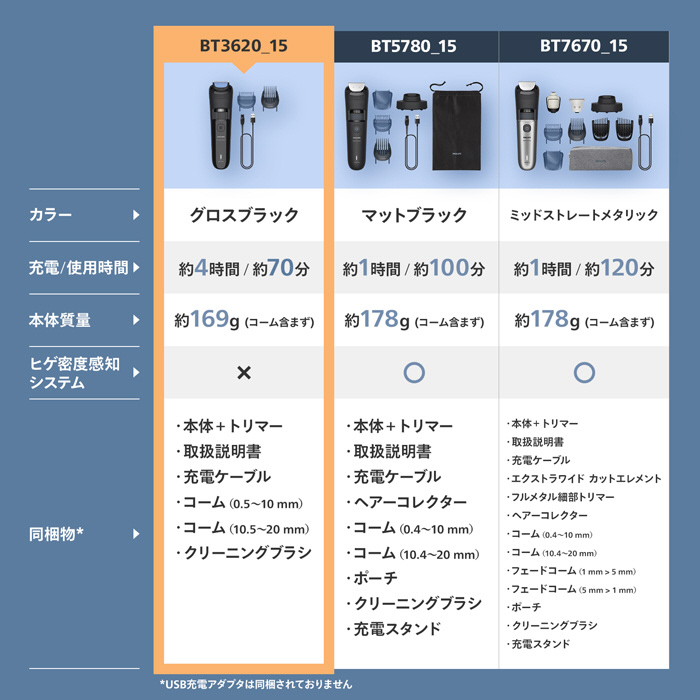 フィリップス ヒゲトリマー 3000シリーズ フィリップス グロスブラック BT3620/15