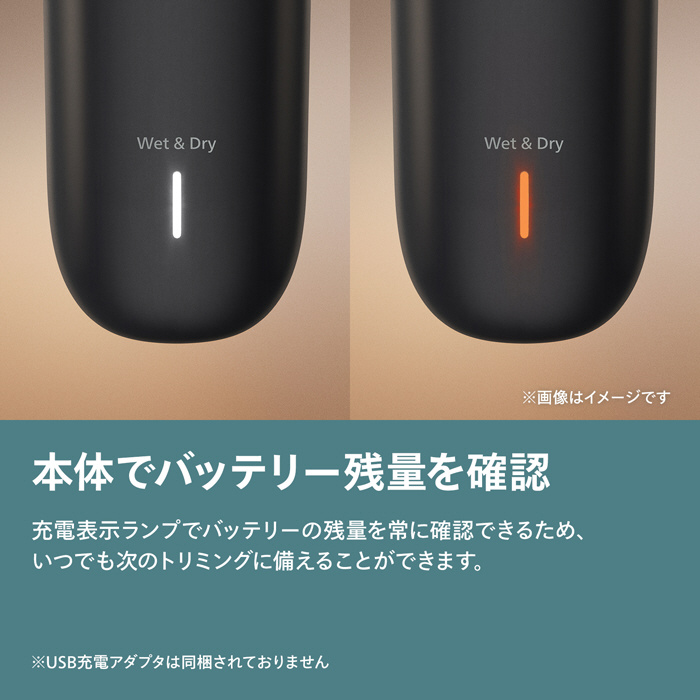 本体にあるインテグレートライトが、身体を照らすので、見えにくい部位や暗いところにある毛を見えやすくします。インテグレートライトで身体を照らしながら使うことで、剃りにくい部位や剃り残しが出やすい部位などで正確なグルーミングが可能です。インテグレートライトはシェービングヘッドとトリミングヘッドの両方で使用でき、インテグレートライトのOn/Offも可能です。