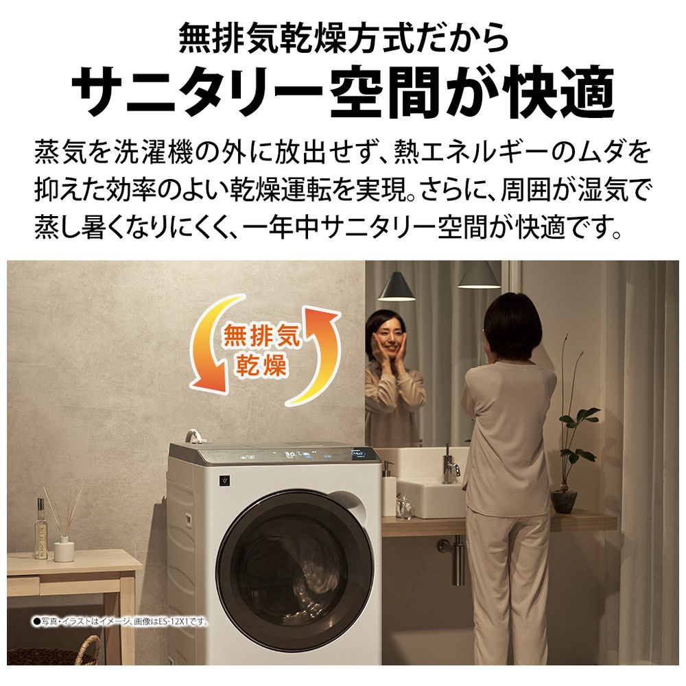 冷却水を使わず、ドラム内の空気を除湿しながら乾燥する「ヒートポンプ乾燥」を搭載。低温風だから衣類にやさしく上質な仕上がりを実現します。