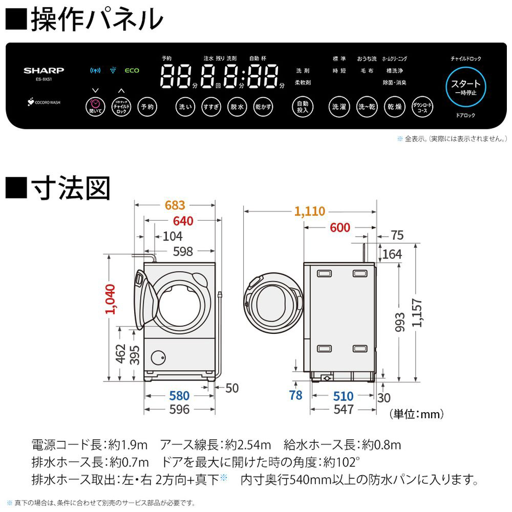 無線LAN機能※1を搭載しているので、スマホアプリ「COCORO HOME」から「COCORO WASH※2」サービスが利用できます。「COCORO WASH」は、日々の洗濯の手間を減らし、よりスマートにしてくれるサービスです。先進的なAIoT技術によって洗濯機やクラウド上のAI(人工知能)と連携し、一人ひとりに合わせた最適な洗濯をご提案します。