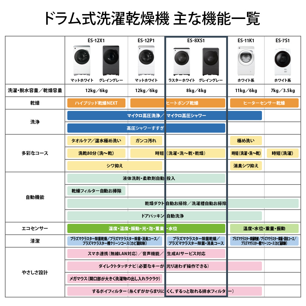 ドラム式洗濯乾燥機 グレイングレー ES-8XS1-HL [洗濯8.0kg /乾燥4.0kg /ヒートポンプ乾燥 /左開き]