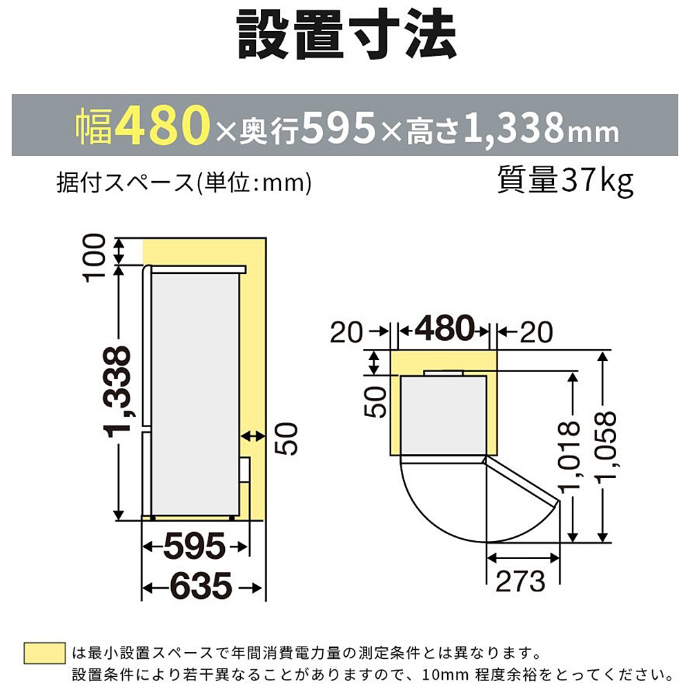 三菱冷蔵庫Pシリーズ マットホワイト MR-P17M-W [48p /168L /2ドア /右開きタイプ /2025年]