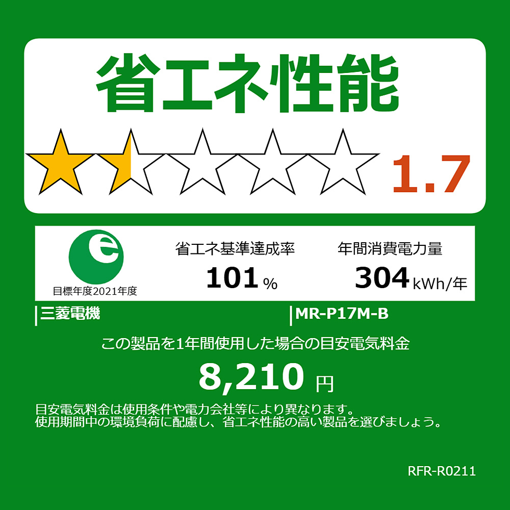 年間消費電力量 304kWh/年(JIS C 9801-3:2015)