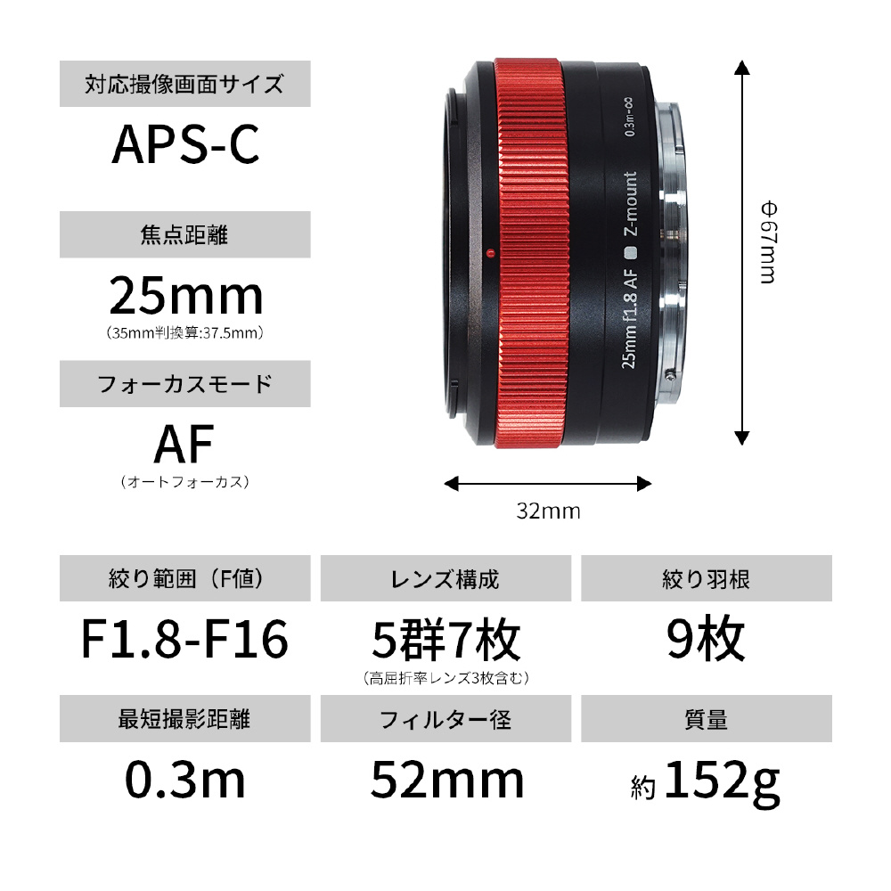SG-image AF 25mm F1.8 ニコンZマウント APS-C レッド [ニコンZ /単焦点レンズ]
