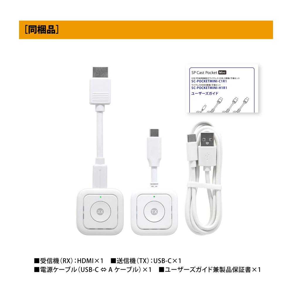 〔ワイヤレスHDMI〕送受信機セット(USB-C用) SP Cast Pocket Mini (ワイヤレスUSB-C to HDMI) ホワイト SC-POCKETMINI-C1R1