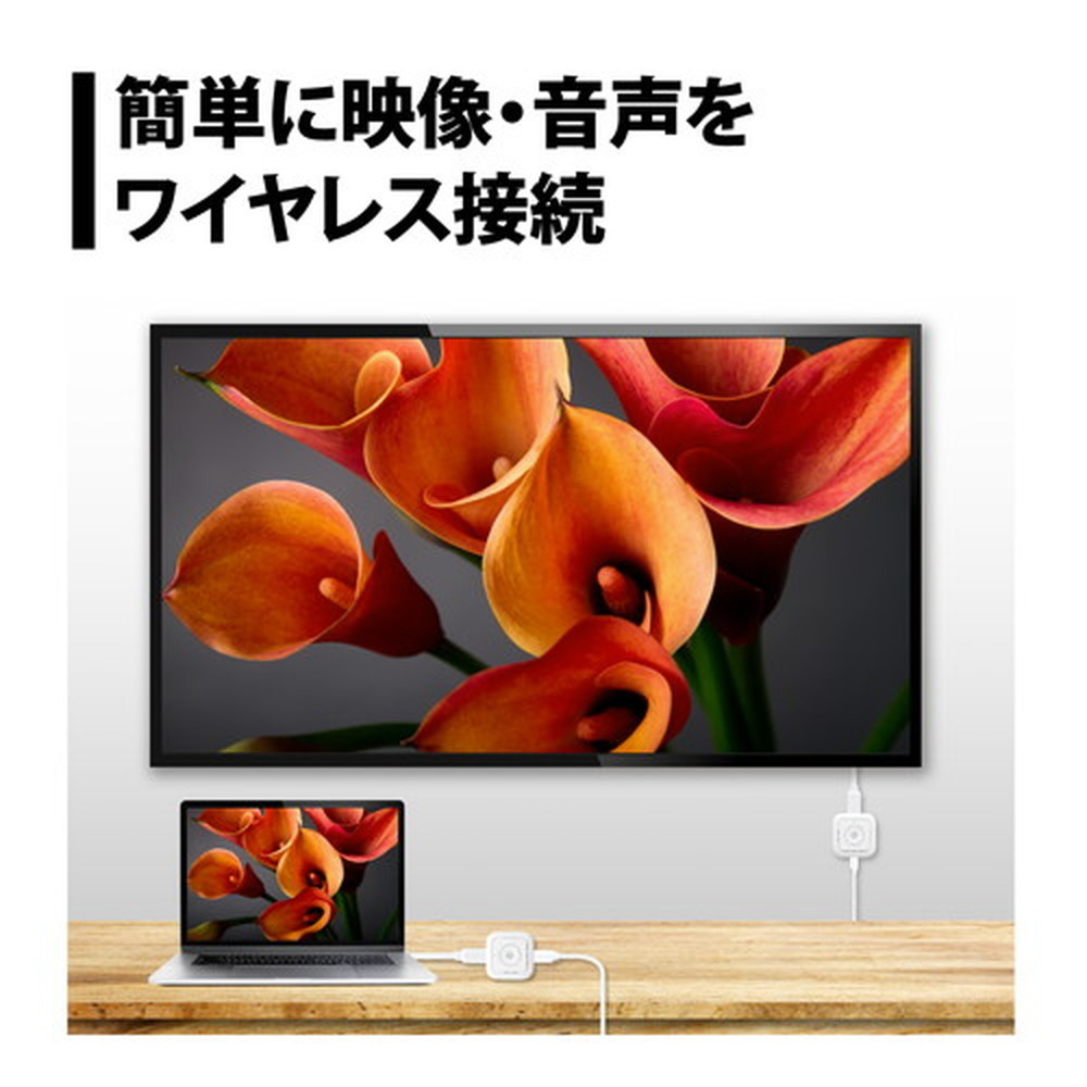 普段ノートPCやタブレットで見ている映画や動画を、離れた場所の大型モニターやプロジェクターで見たい場合、本製品をワイヤレスに接続することで、余分なケーブルを増やさずに大画面で観賞することができます※。