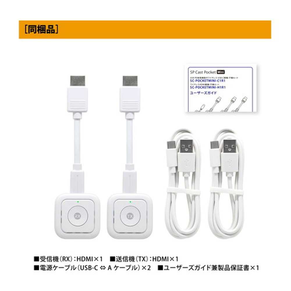 ※本製品は送信機・受信機ともにHDMI接続の製品です。送信機がType-C接続になっているタイプもございます。Type-C接続製品は「SP Cast Pocket Mini(ワイヤレスUSB-C to HDMI)」をご参照ください。