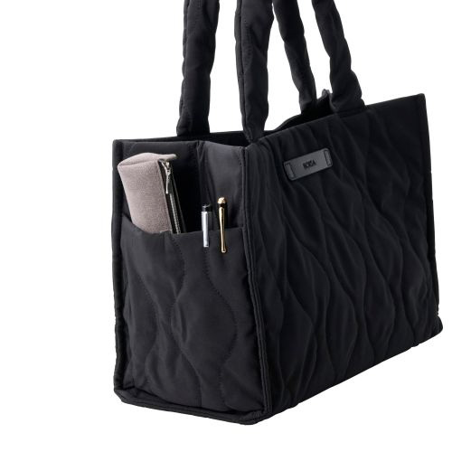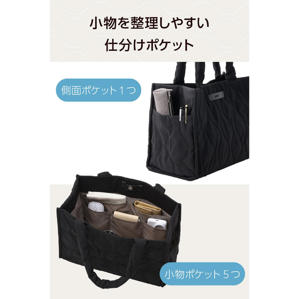 在宅ワークの道具管理や社内移動もスムーズにできる!ハンドル付きのツールボックスです。大容量設計で、資料やワークツールをまとめてすっきり収納可能。上品な光沢のあるオニオンステッチのキルティング素材を採用した、大人カジュアルなデザインです。