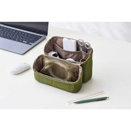 ガジェットポーチ [W200xD65xH175mm] キルティング スタンドタイプ カーキ BMA-QTGPSGN
