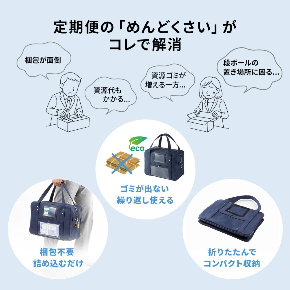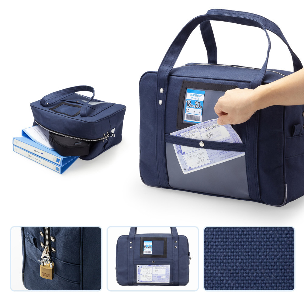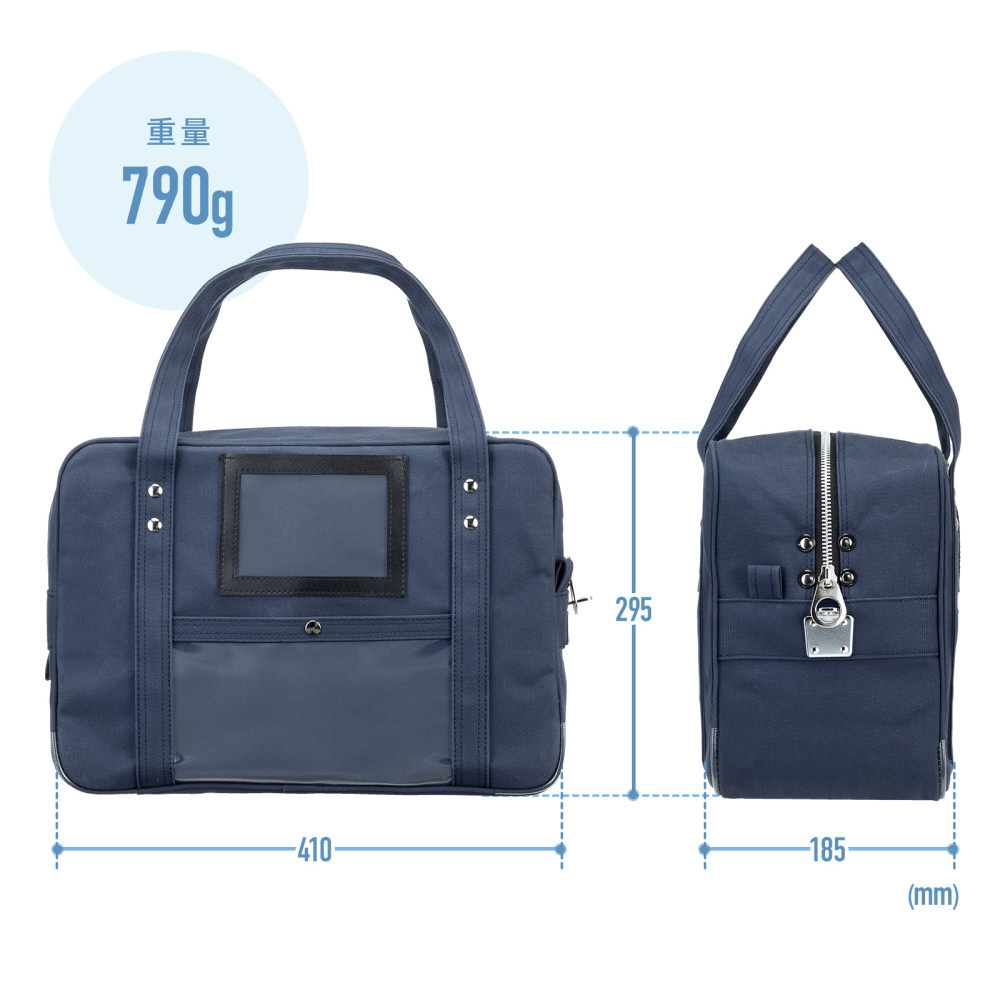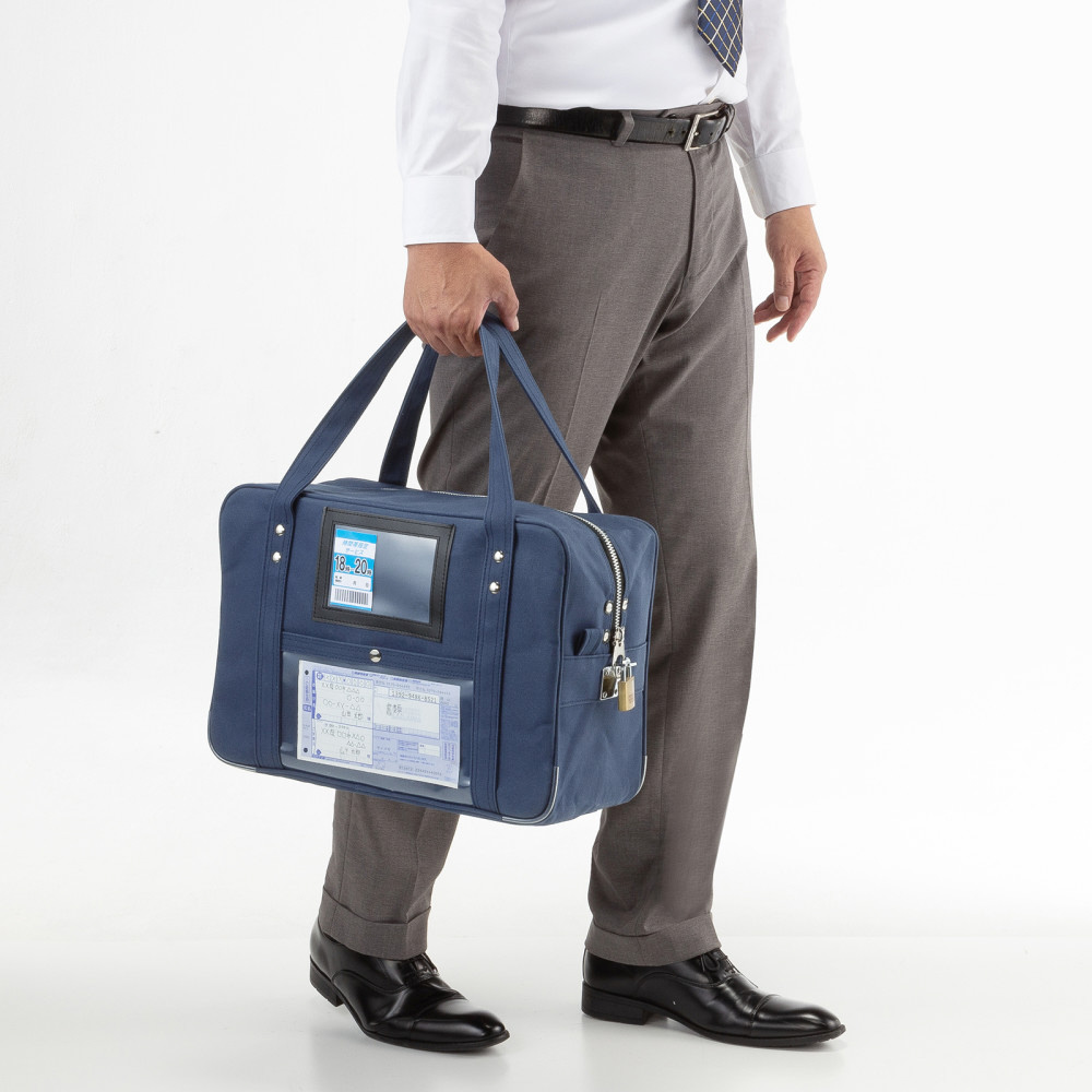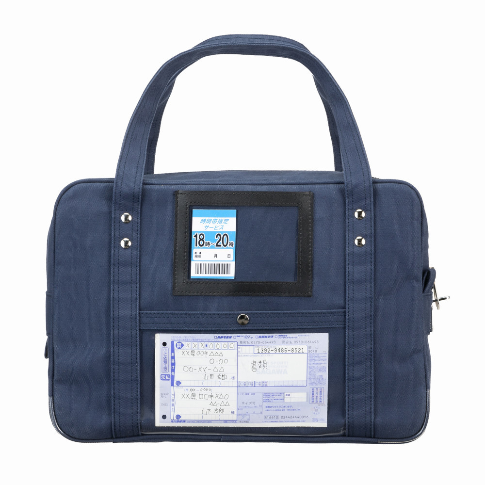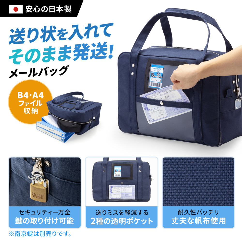 メールバッグ [W410xD185xH295mm] 帆布 メールボストンバッグ 8号帆布 防犯 鍵対応 クリアポケット 書類配送 底板付 折りたたみ ネイビー ネイビー BAG-MAIL3NV