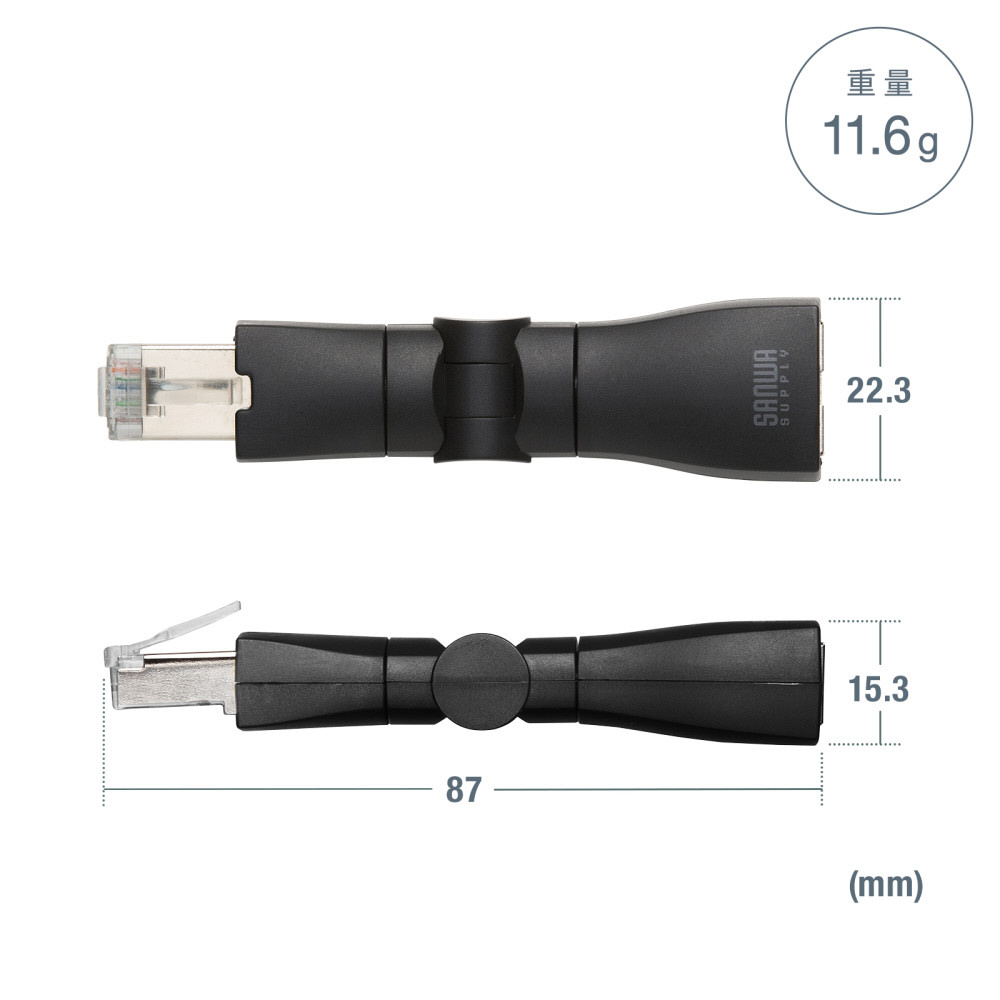 RJ-45 回転式アダプタ(STP) PoE対応 ブラック ADT-RJ6A-3D [カテゴリー6A]