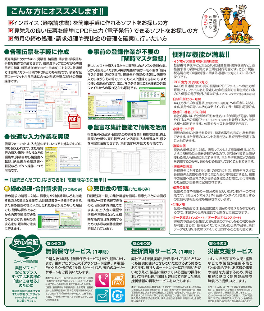 売上から締め処理・合計請求書の自動作成・回収・集計まで対応。販売らくだ最上位ソフト。