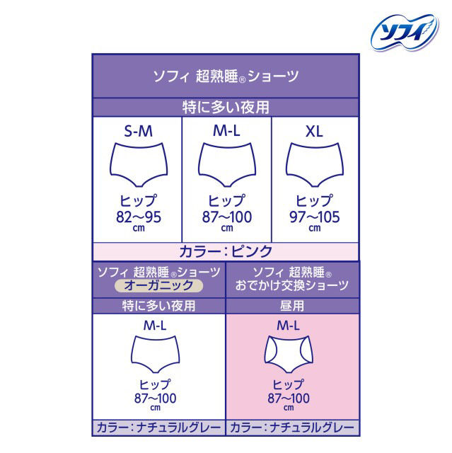 おでかけ交換ショーツはズボンを脱がずに交換できるから、外出中でも簡単にはけるショーツ型ナプキンで、安心したまますごせます。