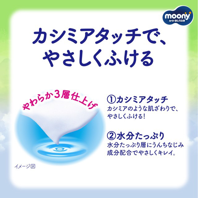 トミカデザインのもって遊べるおしりふき。肌ざわりカシミヤタッチでやさしくふける。水分たっぷりで、時間が経ったこびりつきうんちにもサッとなじんで、やさしくキレイにふいてあげられます。