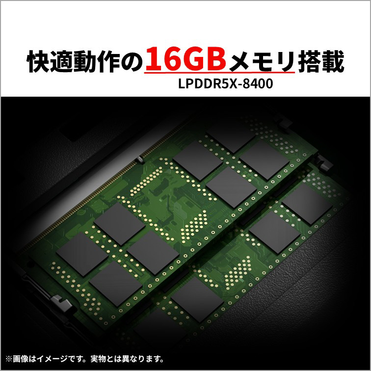最大16GB(デュアルチャネル対応 LPDDR5X-8400)