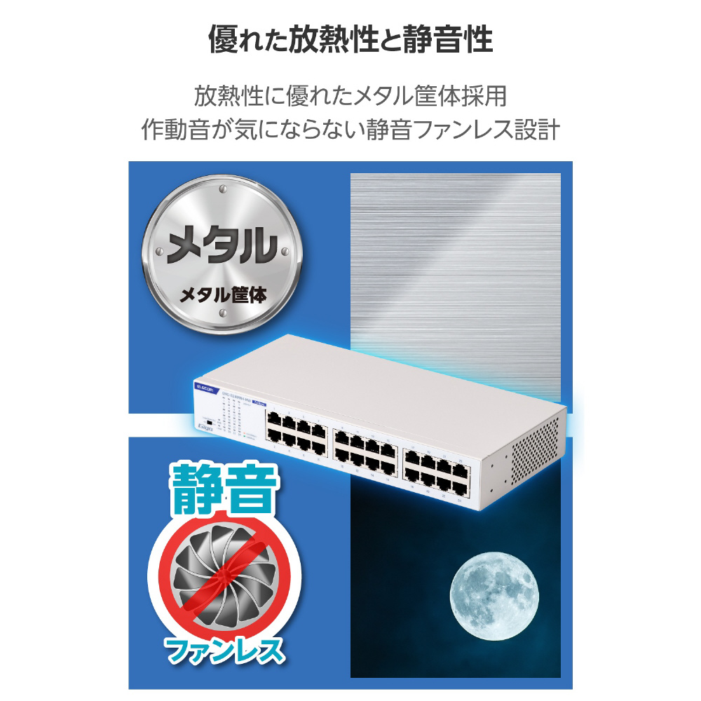 スイッチングハブ [24ポート /1Giga対応 /電源内蔵] メタル筐体 ホワイト EHC-G24MN4-HW