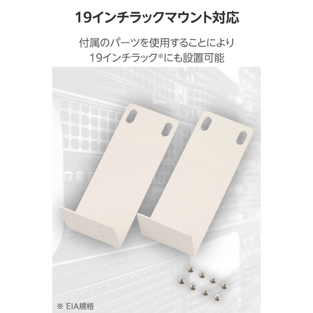 付属のパーツを使用することにより、19インチラック(EIA規格)へ簡単に組み込むことができます。