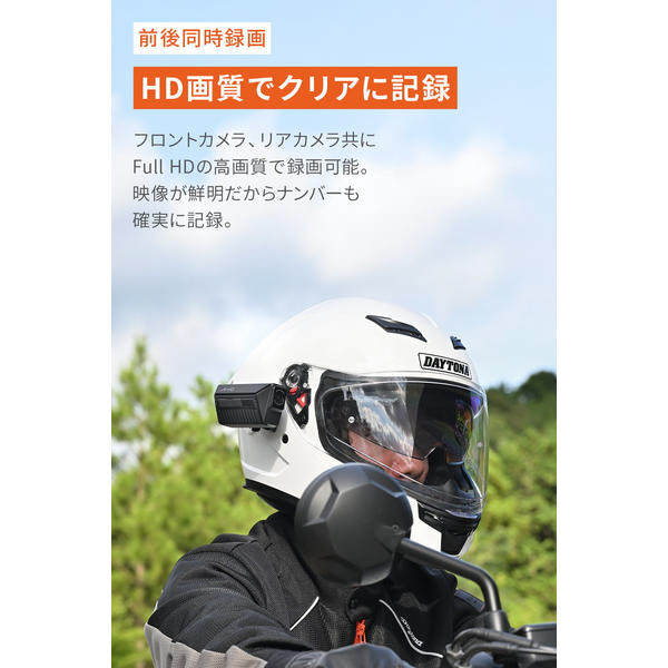 前後フルHD、2カメラ付き。7.5時間の連続録画が可能です。