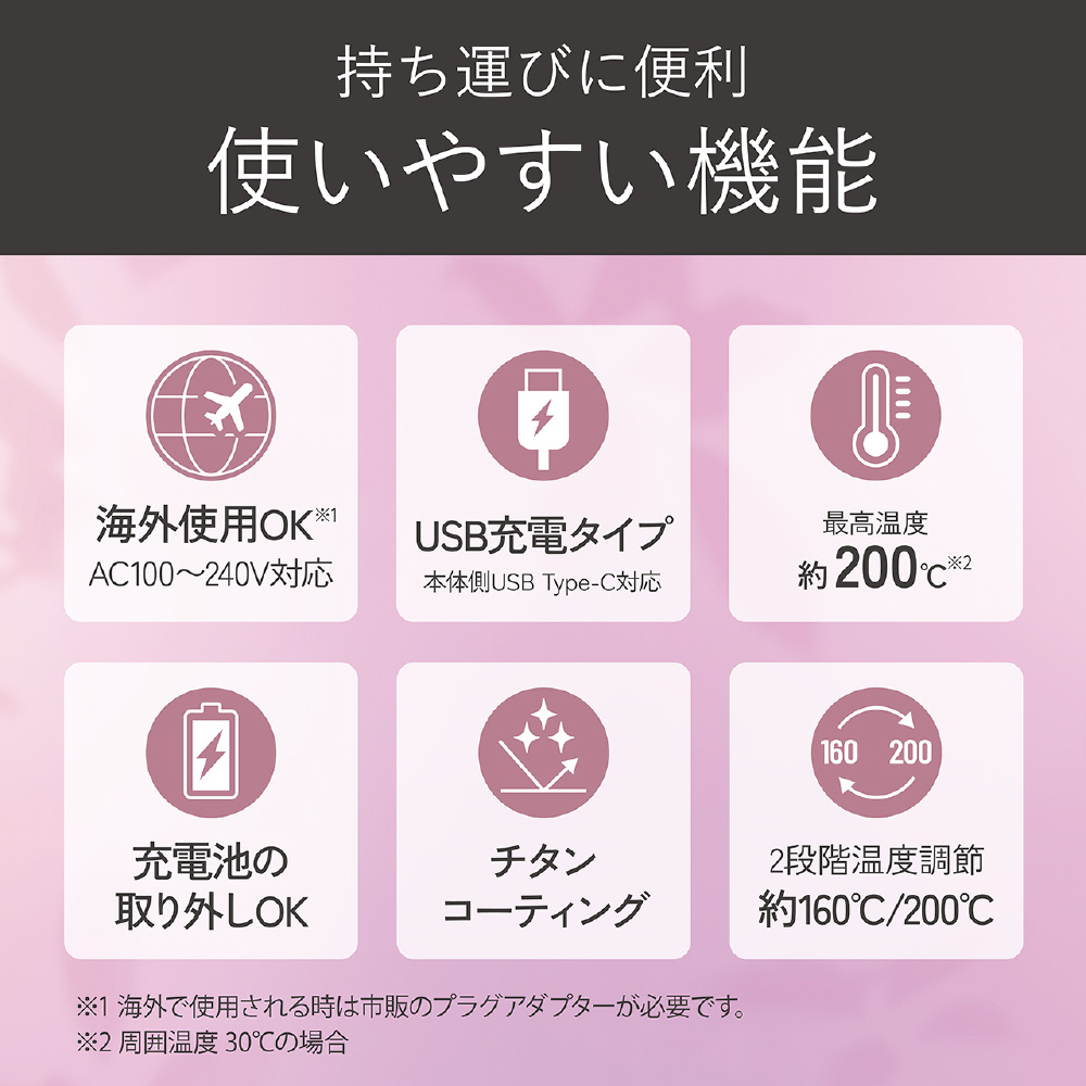 コードレスタイプのストレートアイロン。チタンコーティング採用