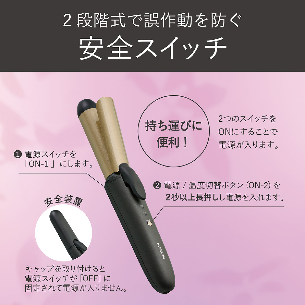 ・その他スイッチ:ON-1:電源スイッチ、ON-2:電源/温度切替ボタン