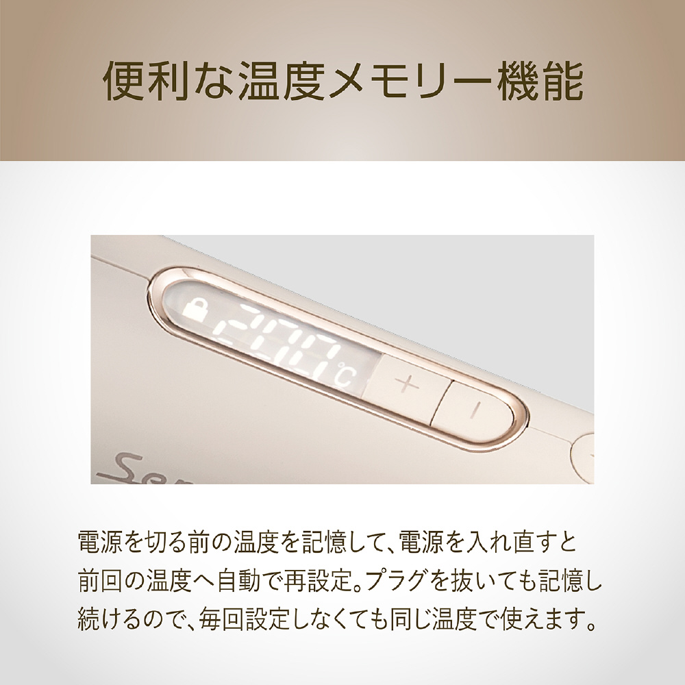 設定温度が記憶されるメモリー機能と、スタイリング時の押し間違えを防ぐ温度ロック機能搭載。
