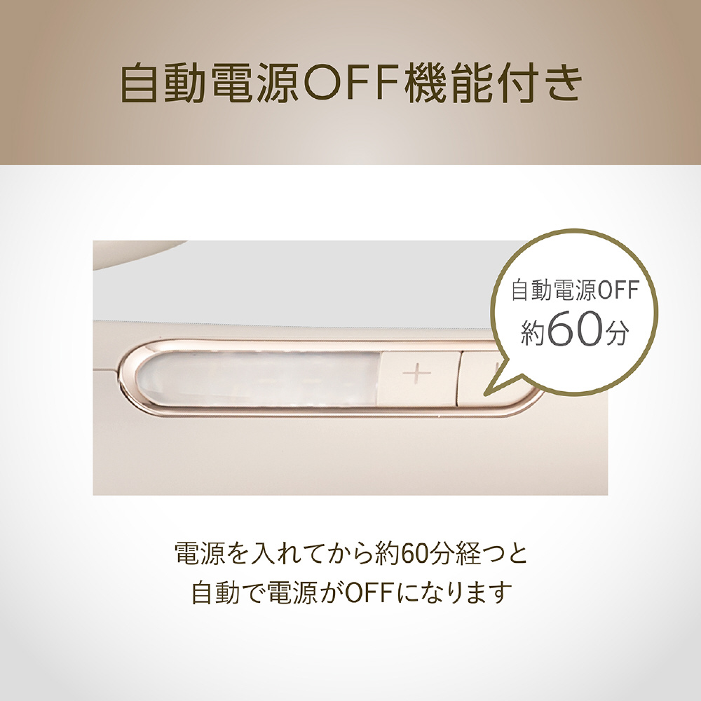 自動電源OFF機能(約60分後)、海外使用OK(100V-240V)