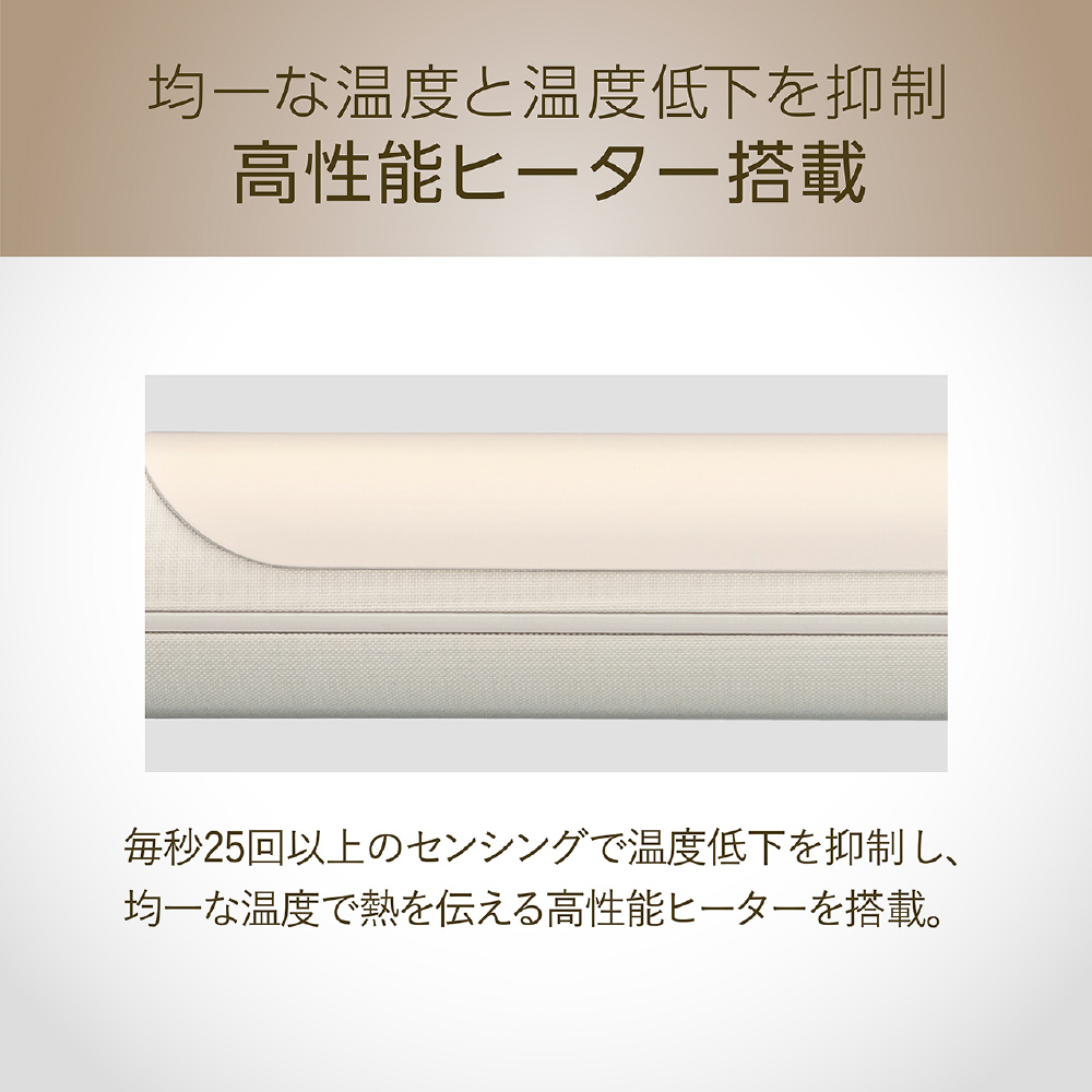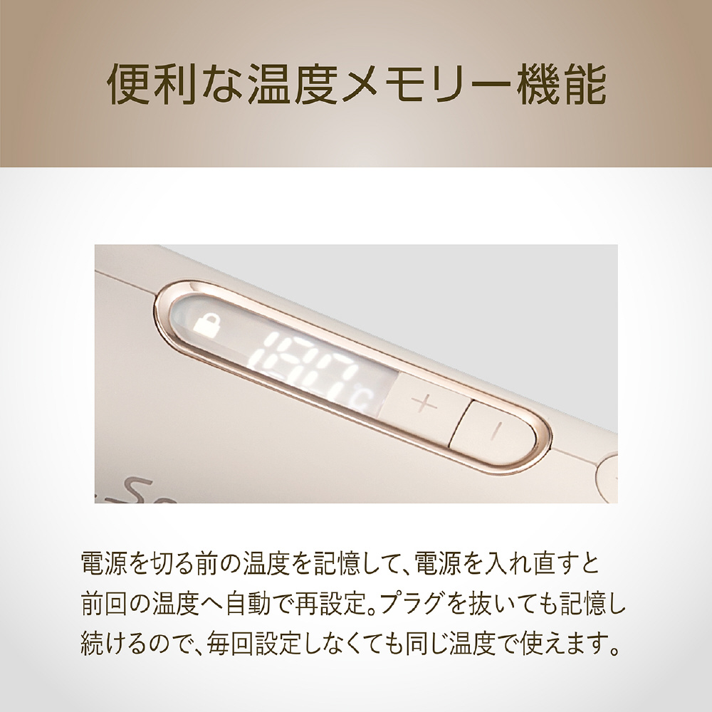 設定温度が記憶されるメモリー機能と、スタイリング時の押し間違えを防ぐ温度ロック機能搭載。