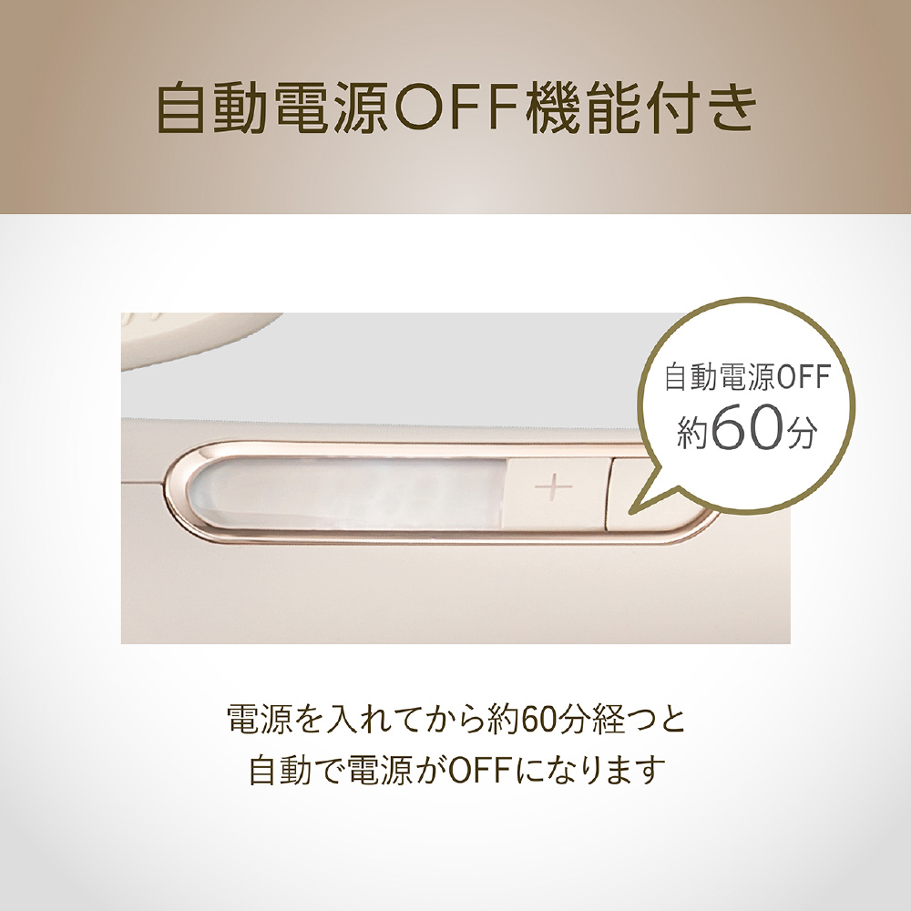 自動電源OFF機能(約60分後)、海外使用OK(100V-240V)