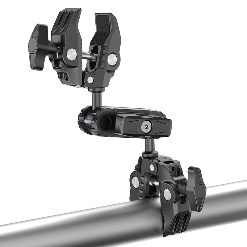 この多機能なスーパークランプは、オートバイ、自転車、三脚、テーブルなどに簡単に取り付けられます。