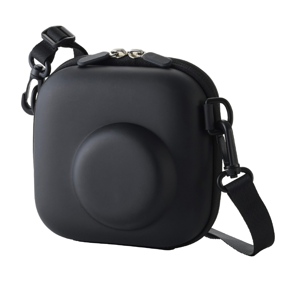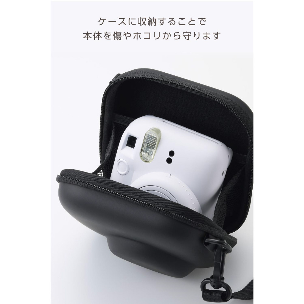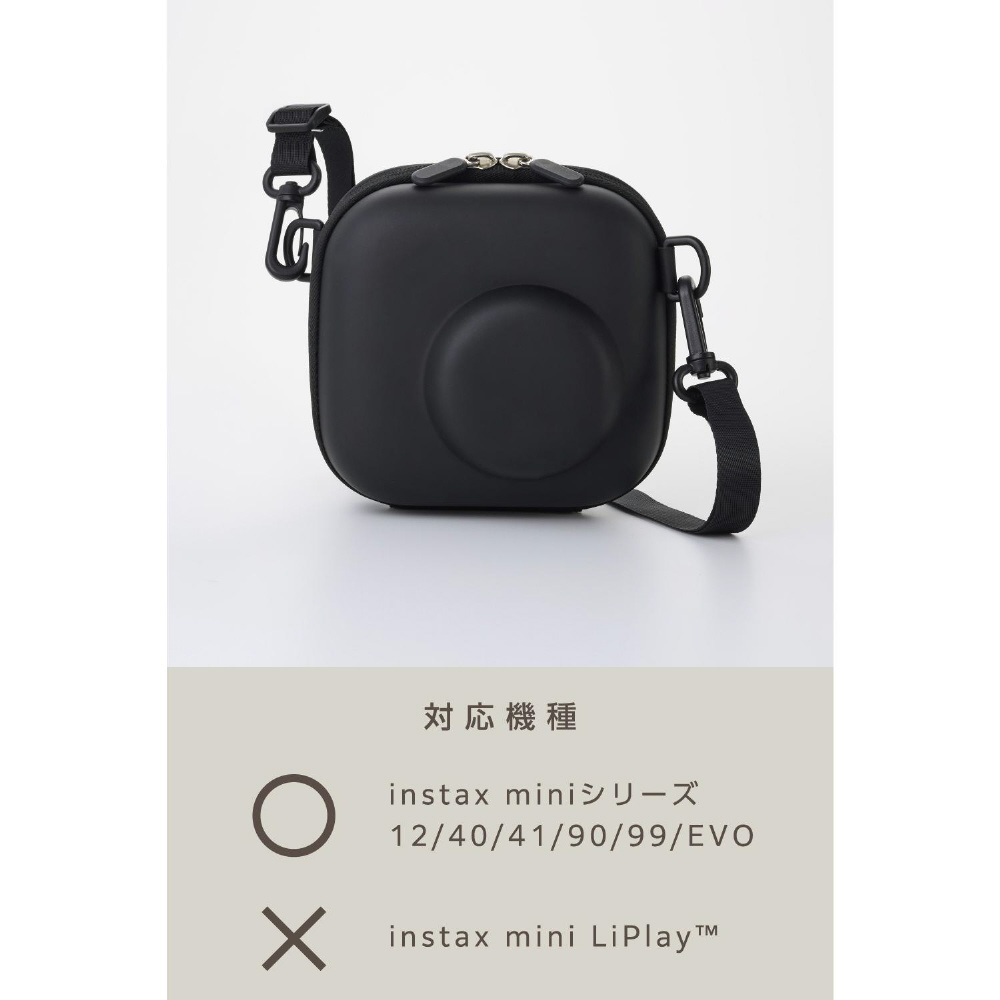 チェキケース instax miniシリーズ対応 カメラケース 写真収納ポケット付き ストラップ付 ブラック IC-CCGPFLBK