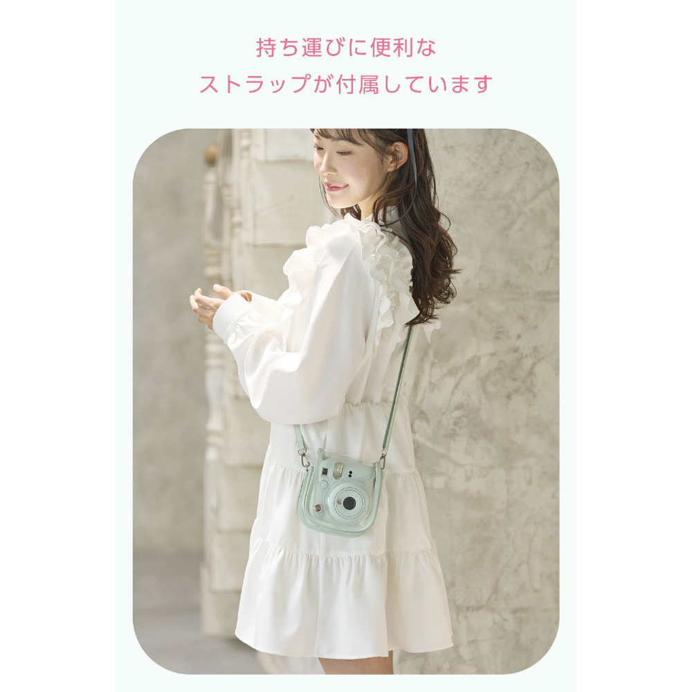 instax mini 12(チェキ)を傷やホコリから守るカメラケースです。ケースからカメラを取り出す手間なく、フラップをめくるだけですぐに撮影できるので、思い立った瞬間を逃しません。クリア素材で本体カラーを活かしたまま、チェキの可愛さを引き立てます。チェキの可愛さはそのままに、毎日の撮影をもっと楽しくします。