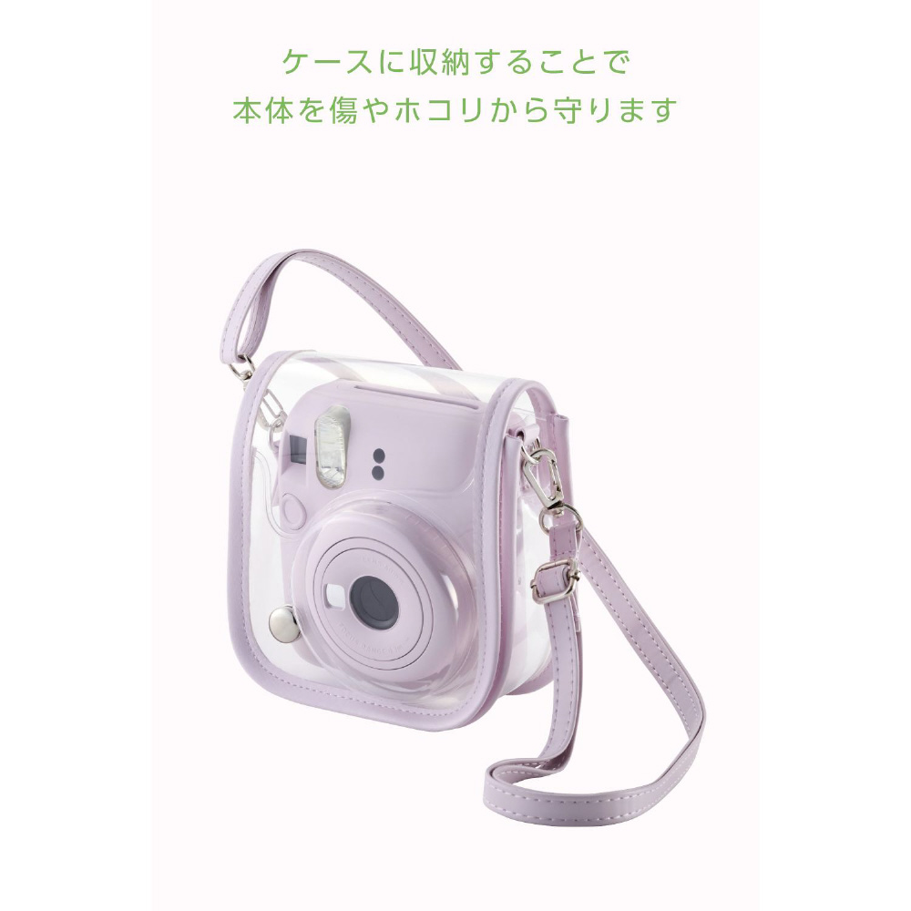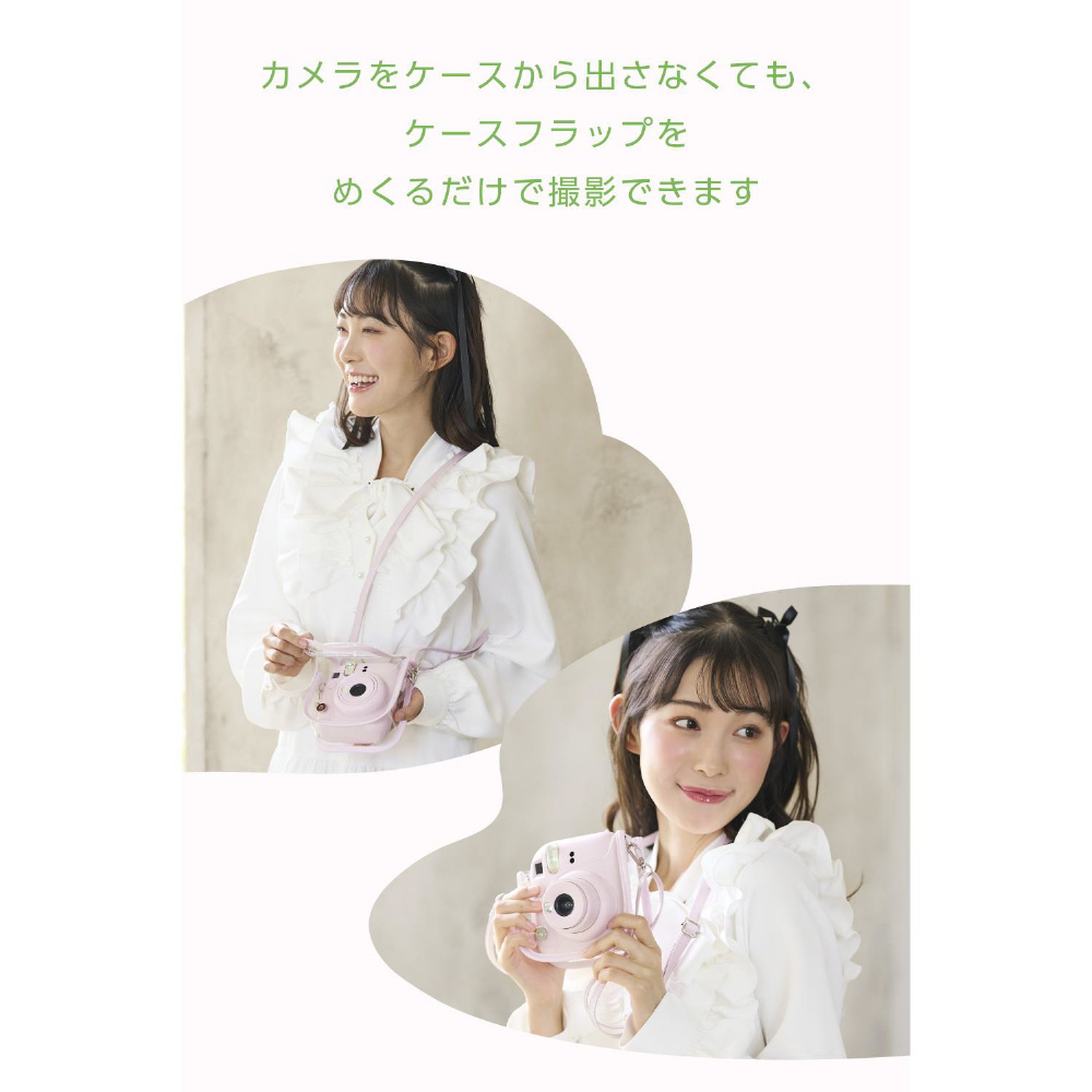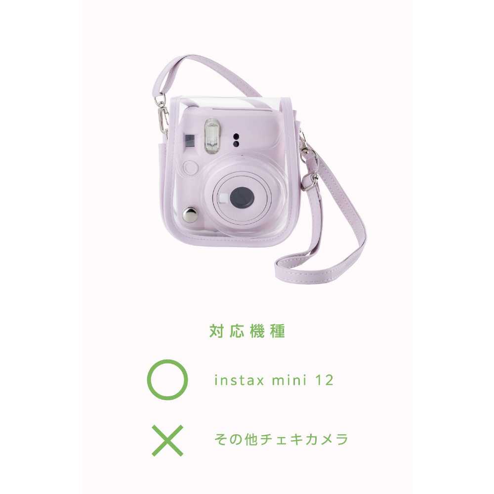 instax mini 12(チェキ)を傷やホコリから守るカメラケースです。ケースからカメラを取り出す手間なく、フラップをめくるだけですぐに撮影できるので、思い立った瞬間を逃しません。クリア素材で本体カラーを活かしたまま、チェキの可愛さを引き立てます。チェキの可愛さはそのままに、毎日の撮影をもっと楽しくします。