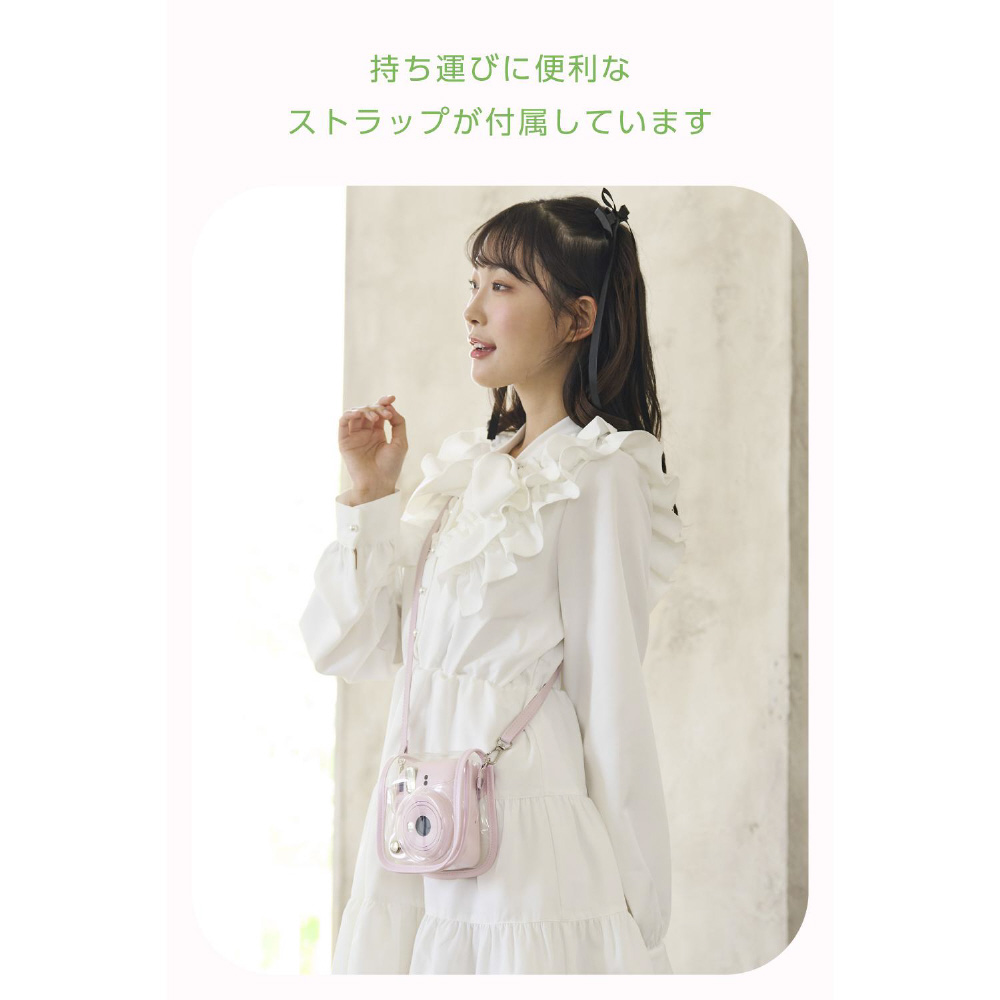 クリアタイプで、チェキ本体のカラーを活かしながら可愛く持ち運べます。エッジの部分はinstax mini 12(チェキ)シリーズ本体のカラーに合わせているので、本体とのコーディネートも楽しめます。