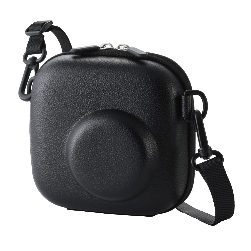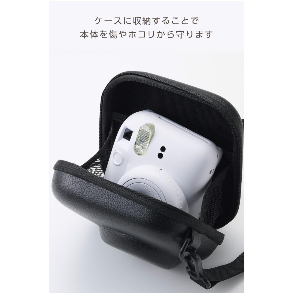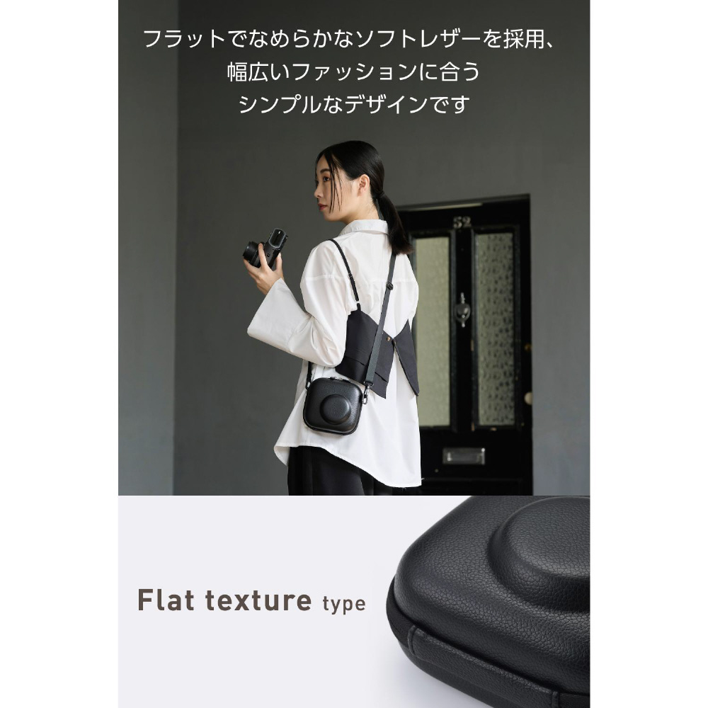 チェキケース instax miniシリーズ対応 エンボステクスチャー カメラケース 写真収納ポケット付き ストラップ付 ブラック IC-CCGPTXBK