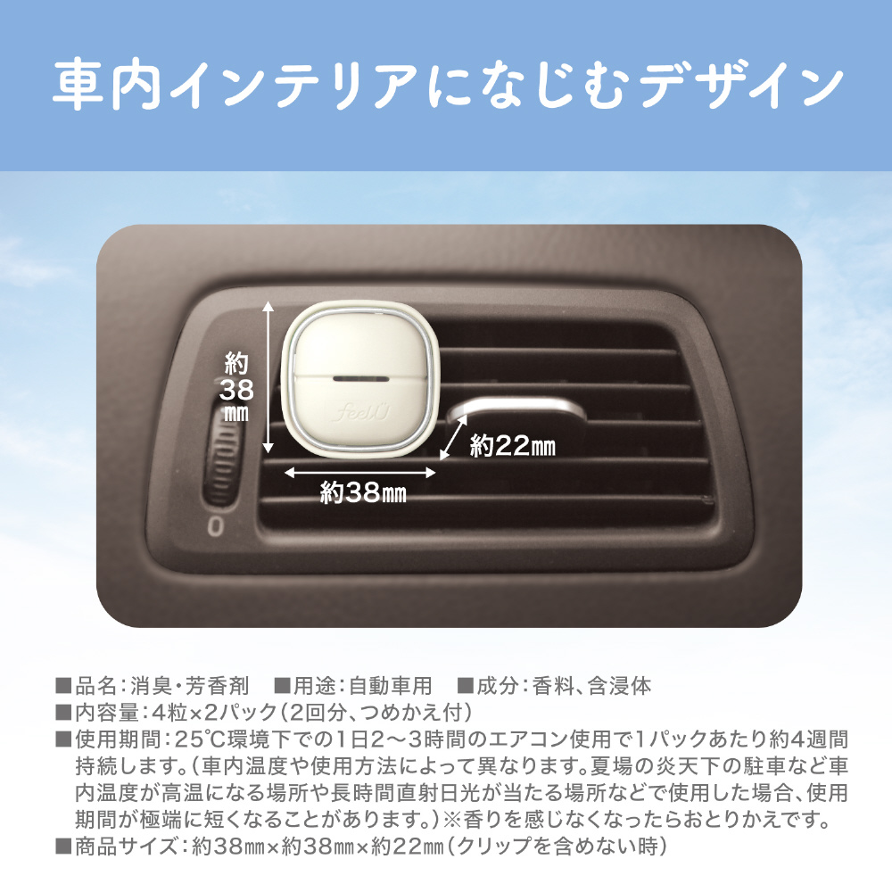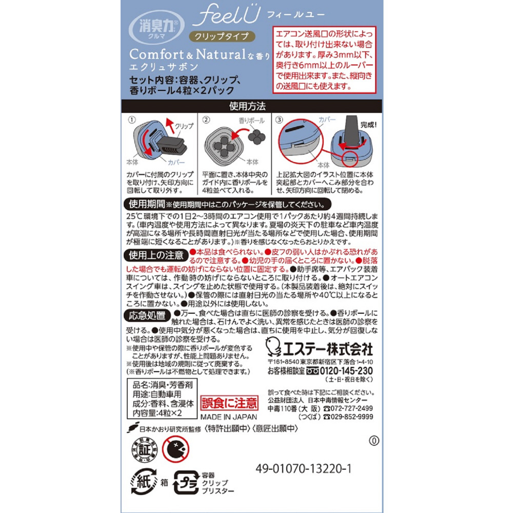 消臭力 クルマ用 feelU(フィールユー) クリップタイプ 本体 エクリュサボン 2回分(つめかえ付) [車用 消臭剤 芳香剤]