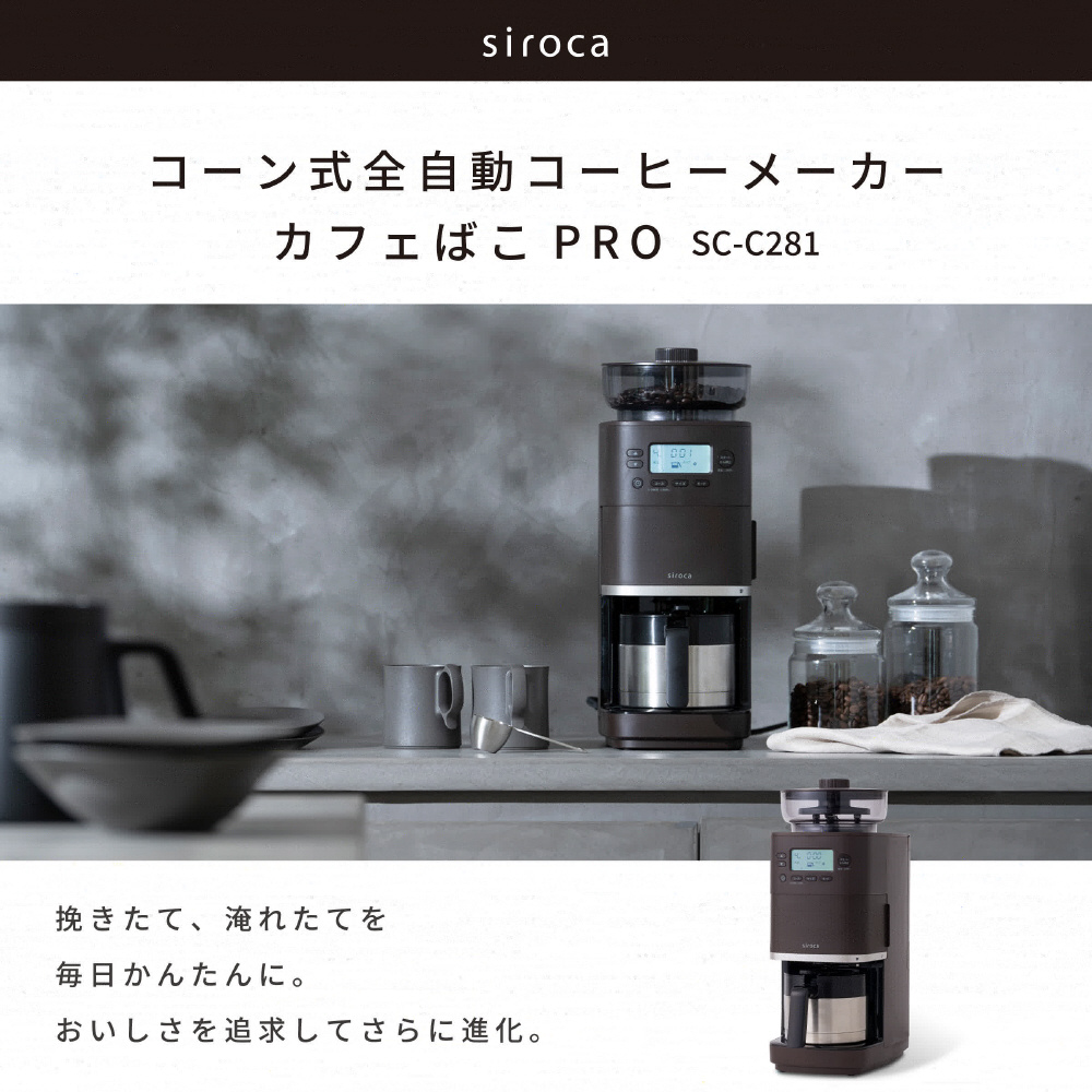 コーン式全自動コーヒーメーカー カフェばこ PRO siroca ダークブラウン SC-C281TD [全自動 /ミル付き]